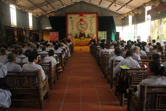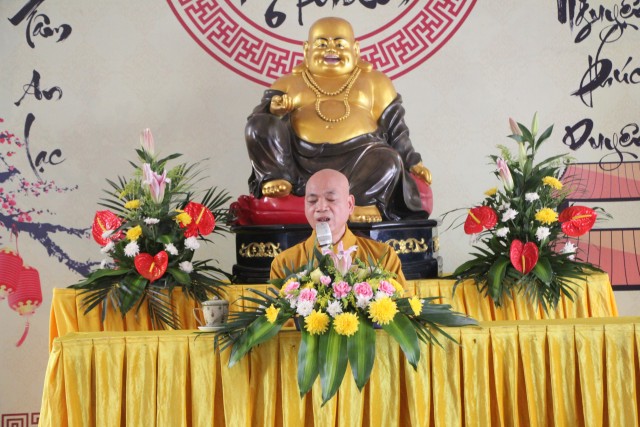 Mỗi người hôm nay về đây tu học là thắng duyên lớn, gieo trồng từ nhiều đời trước. Do đó, chúng ta cần tin sâu giáo lý nhân quả để làm chủ ba nghiệp, mang tình thương tới mọi người, thực hành pháp môn niệm Phật để chuyển hóa đời sống, đạt được an lạc, hạnh phúc ngay trong hiện tại và cả đời sau.