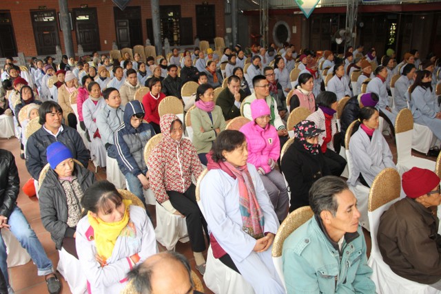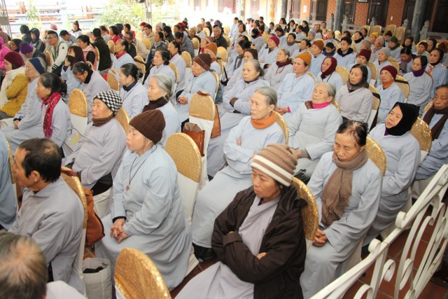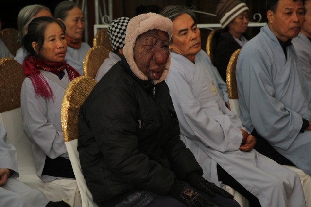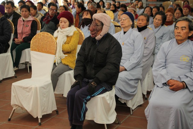 Sau đó, Thượng tọa đã chia sẻ hoàn cảnh khó khăn của ông Đỗ Văn Luyện, sinh năm 1957, (quê Đồng Tiến, Quỳnh Phụ, Thái Bình) bị khối u ở mặt. Nhờ quý Thầy gieo duyên, ông được biết đến chùa Từ Xuyên và hướng dẫn pháp môn niệm Phật.