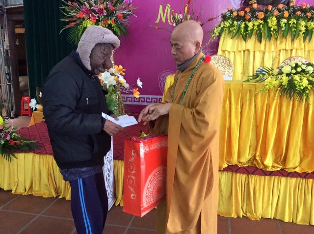Dịp này, Thượng tọa trụ trì đã tặng quà động viên ông và CLB Hương Từ Tâm (TP.Hải Phòng) xin phát tâm hỗ trợ kinh phí sinh hoạt, giúp ông có thêm nghị lực, niềm tin vượt qua khó khăn trong đời sống.