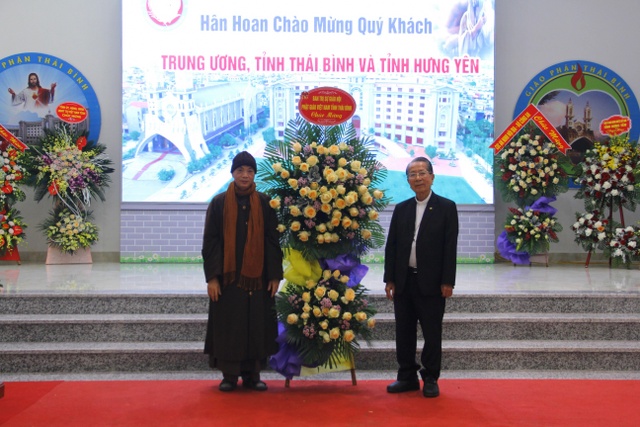 Đáp lời, Linh mục Phê rô Nguyễn Văn Đệ, TGM trân trọng cảm ơn tình cảm và sự quan tâm của Giáo hội Phật giáo Việt Nam tỉnh, Ban Trị sự đối với Tòa Giám mục, các chức sắc, giáo dân trong giáo phận. Thượng tọa đã tặng hoa chúc mừng tới đức Giám mục và dự lễ gặp mặt của Tòa Giám mục với lãnh đạo các cơ quan TƯ, lãnh đạo Tỉnh ủy – HĐND – UBND – UBMTTQVN hai tỉnh Thái Bình – Hưng Yên; đại diện GHPGVN tỉnh, Hội Thánh Tin lành Thái Bình nhân dịp Giáng sinh 2019.