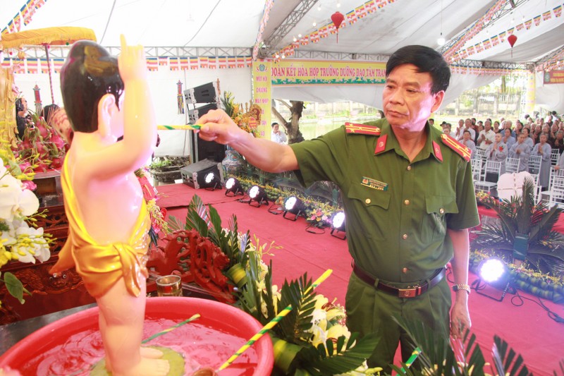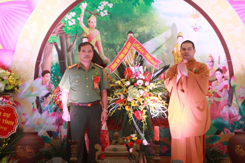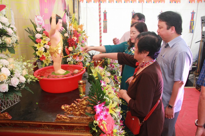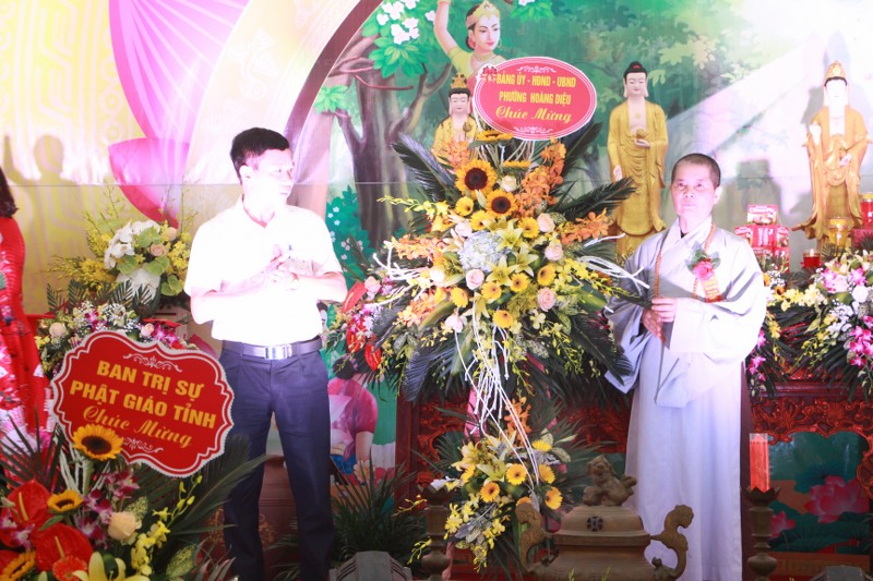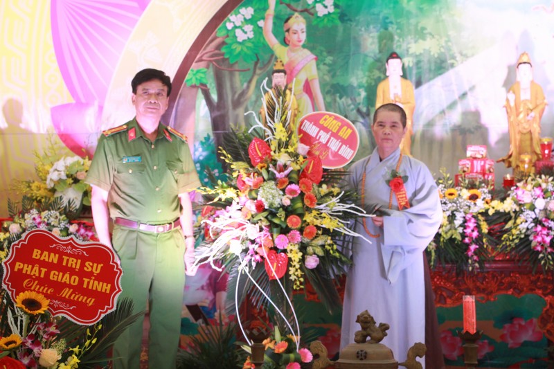 Dịp này, chư tôn đức chứng minh, quý quan khách, đại diện Phật tử đã tặng hoa chúc mừng BTS PG thành phố nhân dịp Đại lễ Phật đản. Kết thúc buổi lễ, chư tôn đức, quý vị đại biểu đã dâng hương và cử hành nghi thức tắm Phật trong tinh thần trang nghiêm, thành kính, hòa hợp trong ngày đản sinh của đức Từ phụ Bản sư Thích Ca.