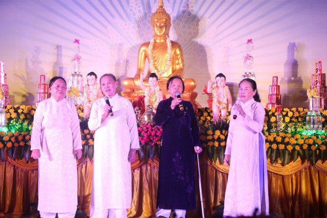 Tại buổi lễ, Thượng tọa trụ trì Thích Thanh Định đã tuyên đọc thông điệp của Đức Pháp chủ HĐCM TƯGH gửi Tăng Ni, cư sĩ, Phật tử Việt Nam nhân dịp Phật đản. Với tấm lòng thành kính hướng về ngày kỷ niệm của đức Phật Thích Ca, các nghệ sĩ Phật tử đến từ TP.Thái Bình: NSƯT.Thanh Thủy, Quang Hanh, Đàm Thu Thủy, Trần Hoàng, Á quân tài năng Nhí Việt Nam 2016 Võ Hương Giang có những lời ca tiếng hát, điệu múa dâng lên cúng dường Tam Bảo.