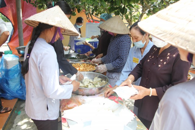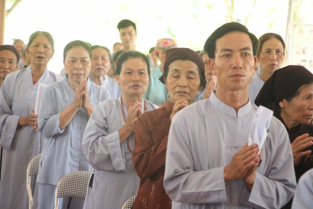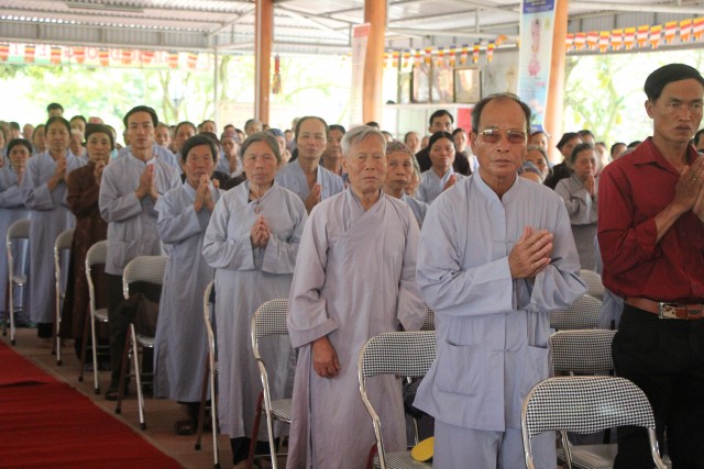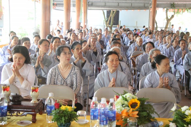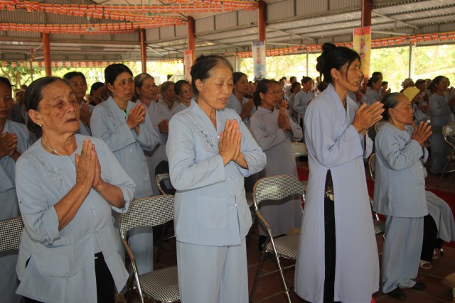 Buổi chiều cùng ngày, Thượng tọa trụ trì cùng chư Tăng đã làm lễ truyền thụ tam quy, ngũ giới cho gần 100 thiện nam, tín nữ địa phương.