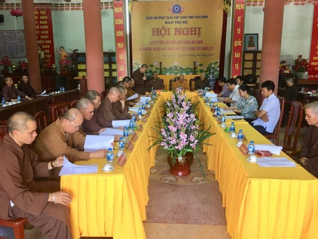 Thay mặt BTS Phật giáo tỉnh, TT.Thích Thanh Hòa phát biểu khai mạc Hội nghị. ĐĐ.Thích Thanh Ân, Chánh Thư ký BTS báo cáo sơ kết Phật sự 6 tháng đầu năm và phương hướng hoạt động Phật sự 6 tháng cuối năm 2019. Theo đó, trong thời gian qua, Ban Tăng sự đã đệ trình Thường trực Ban Trị sự GHPGVN tỉnh ra Quyết định bổ nhiệm, cho Tăng Ni có đủ hồ sơ hợp lệ theo quy định Tăng sự tại các đơn vị huyện, thị và tiếp nhận những thiện nam, tín nữ có thiện căn xuất gia. Cụ thể là: Bổ nhiệm trụ trì: 5 vị, kiêm nhiệm trụ trì: 2 vị; Tiếp nhận Tăng Ni từ tỉnh ngoài về sinh hoạt: 4 vị; tiếp nhận người xuất gia: 5 vị. BTS đã tổ chức 6 trường hạ trong tỉnh với 435 Tăng Ni đăng ký tham gia khóa an cư kiết hạ, tuân thủ đúng giới luật Phật chế và quy củ thiền gia. Năm nay, Phân ban Ni giới lần đầu tiên tổ chức Đại lễ tưởng niệm Thánh Tổ Ni Đại Ái Đạo và chư Ni tiền bối Phật giáo Thái Bình.