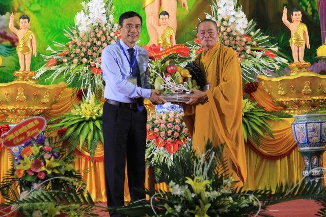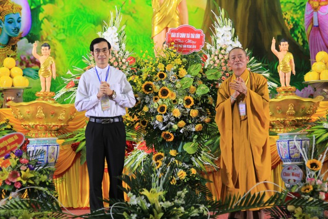 Trong không khí thắm tình đạo vị, gắn bó giữa đạo và đời, ông Phạm Văn Xuyên, Tỉnh Ủy viên, Phó Chủ tịch UBND tỉnh thay mặt cho các cấp lãnh đạo tỉnh có lời phát biểu. Ông ghi nhận và đánh giá cao những đóng góp của giới Tăng Ni, Phật tử đối với sự phát triển kinh tế – xã hội của tỉnh trong thời gian qua; đồng thời đề nghị trong thời gian tới, các vị trong Ban Trị sự Giáo hội Phật giáo cùng các Tăng Ni trong tỉnh tiếp tục tập trung tích cực tuyên truyền, vận động Tăng Ni, tín đồ Phật tử trong tỉnh chấp hành tốt các chủ trương, chính sách của Đảng, pháp luật của Nhà nước, tích cực tham gia vào các phong trào thi đua yêu nước tại địa phương, sống tốt đời đẹp đạo. Quan tâm xây dựng Giáo hội Phật giáo tỉnh vững mạnh, hướng thiện, bài trừ mê tín dị đoan, bảo vệ thuần phong mỹ tục, giữ gìn và phát huy bản sắc văn hóa dân tộc. Tiếp tục quan tâm xây dựng, củng cố đội ngũ Tăng Ni từ bi, trí tuệ, thực hiện nghiêm giới luật và uy nghi đạo hạnh; kết hợp chặt chẽ giữa việc thi hành chính pháp với tôn trọng và thực hiện nghiêm pháp luật của Nhà nước trong hoạt động Phật sự, đặc biệt các quy định của pháp luật về đất đai và xây dựng liên quan đến tín ngưỡng, tôn giáo…