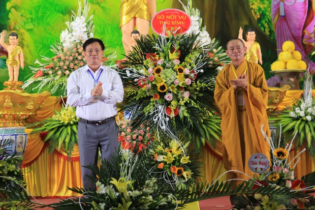 Đại lão HT.Thích Thanh Dục, Uỷ viên Thường trực HĐCM TƯGH, Chứng minh BTS PG tỉnh; TT.Thích Thanh Hòa, UV HĐTS TƯGH, Trưởng BTS PG tỉnh, Trưởng BTC Đại lễ; chư tôn đức Tăng, Ni BTS PG tỉnh, BTS PG các huyện, thành phố trong tỉnh; chư tôn đức trụ trì các tự viện chứng minh, tham dự buổi lễ. Linh mục Giuse Trịnh Tiến Thành, Giám đốc Tòa Giám mục giáo phận Thái Bình, Chánh xứ giáo xứ Chính tòa đại diện cho tôn giáo bạn về dự.