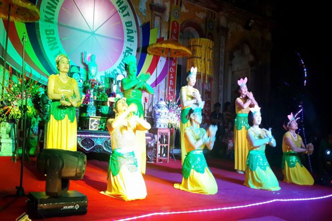 Cũng trong buổi tối cùng ngày, các Phật tử và chính quyền địa phương đã tổ chức Đêm hoa đăng cúng dàng đức Từ Phụ Thích Ca Mâu Ni Phật nhân kỷ niệm 2640 năm ngày đản sinh của Ngài dưới sự hướng dẫn của cư sỹ Trí Minh – Bản tự chùa Đông Xuyên và sự tham gia của hàng trăm em thanh thiếu niên nhi đồng trong làng. Những ngọn nến lung linh huyền ảo hiển hiện giữa một làng quê thanh bình đã thắp sáng khắp không gian chùa Đông Xuyên càng làm cho buổi lễ trở nên linh thiêng và ý nghĩa hơn với tấm lòng thành kính, kính dâng lên giáo chủ cõi Ta Bà.