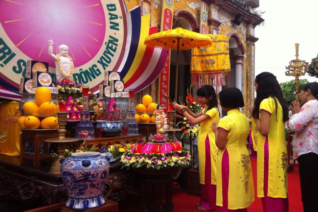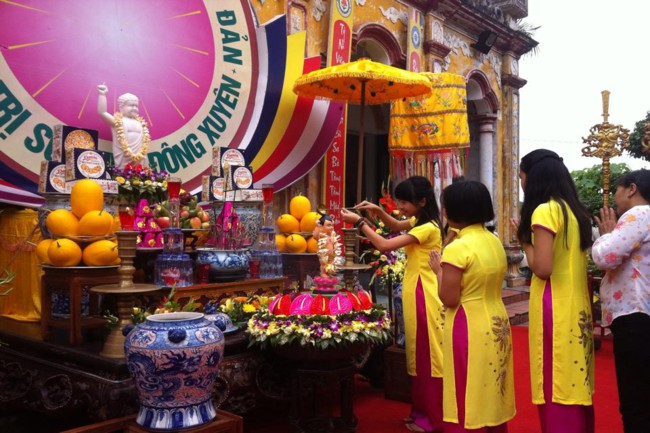 Trước khi kết thúc buổi lễ, bản tự chùa Đông Xuyên, chính quyền địa phương, bà con Phật tử gần xa, nhân dân địa phương đã tổ chức làm lễ dâng hương, bạch Phật cầu nguyện thế giới hòa bình, chúng sinh an lạc và làm lễ tắm Phật theo nghi thức Phật giáo truyền thống.