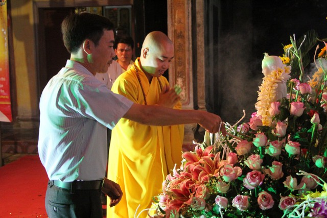 Trong đêm Phật đản, nhân dân tín đồ Phật tử được cung đón: TT.Thích Thanh Định, Phó ban Thường trực BTS PG tỉnh Thái Bình; ĐĐ.Thích Thanh Ân, Chánh Thư ký BTS PG tỉnh; ĐĐ.Thích Minh Giác, Chánh Văn phòng BTS PG tỉnh Hà Nam. Đại lễ còn được đón tiếp: ông Bùi Văn Nhuyên, Bí thư Đảng ủy, Chủ tịch HĐND xã; ông Nguyễn Bá Hạnh, Chủ tịch UBMTTQ xã; đại diện các cơ quan, ban ngành, đoàn thể trong xã. Gần 200 Phật tử đạo tràng và nhân dân tín đồ địa phương đã về dự lễ.