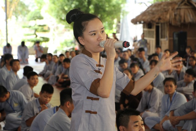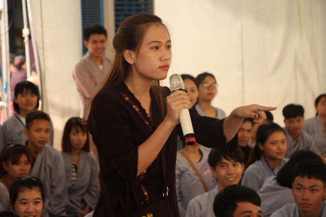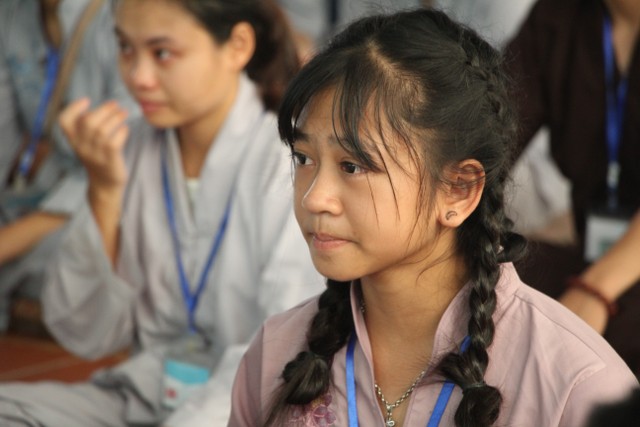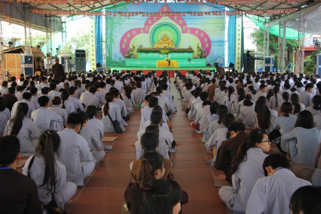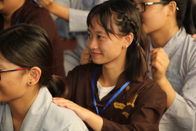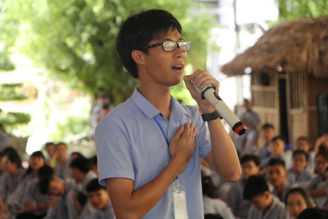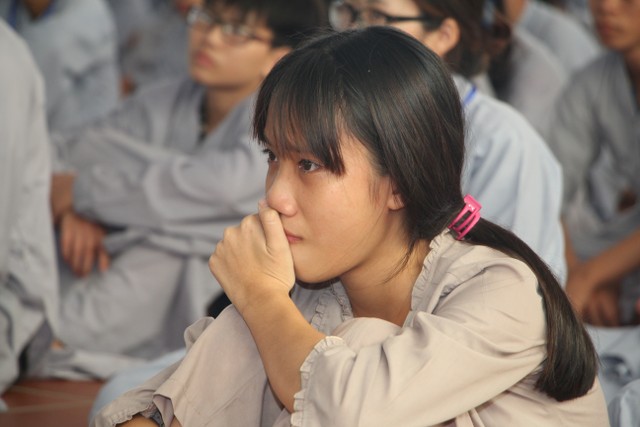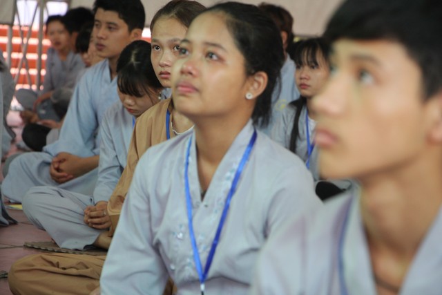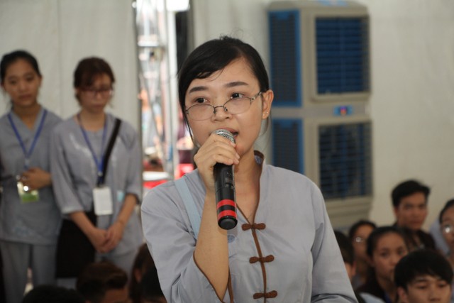 Trước đó, vào sáng cùng ngày, đại chúng đã được lắng nghe ĐĐ.Thích Đạo Quang, chư Tăng chùa Hoằng Pháp (TP.Hồ Chí Minh) chia sẻ về đề tài “Trái tim nhân ái”, nhắn nhủ bản thân mỗi bạn trẻ cần có tình yêu thương trong cuộc sống, nhất là yêu thương bản thân mình, yêu thương cha mẹ, yêu thương những người xung quanh và yêu thương vạn loài, đừng để khi cha mẹ, người thân mất đi mới giật mình thảng thốt thì đã muộn. Sau giờ giảng, quý Thầy đã giải đáp các thắc mắc của các bạn. Bên cạnh đó, các bạn còn được thảo luận với chủ đề “Không ăn thịt chó”, giúp các bạn hiểu thêm về lòng từ bi, không sát sinh và không tiếp tay cho tội phạm.