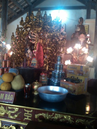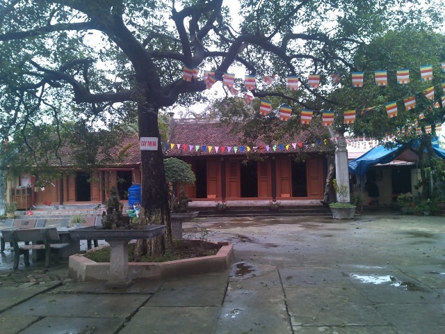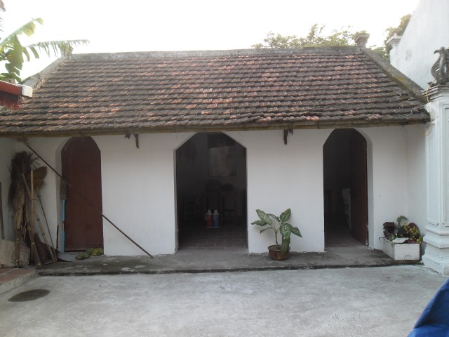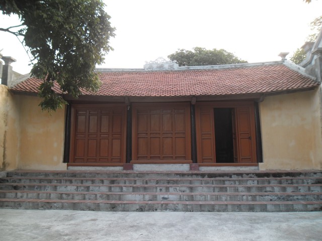 Từ bên phải nhìn vào là đình làng, tiếp đến là chùa thờ Phật (phía trước có cây thị Bà trên 700 năm tuổi), tiếp đến là nhà thờ mẫu Dung và cuối cùng là nhà ở của người trông coi đình.