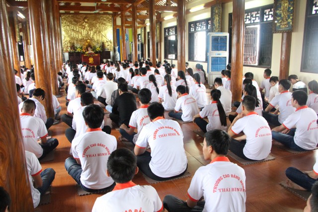 Với mục đích gieo duyên lành Phật pháp đến với các bạn tân sinh viên, học sinh, trang bị cho các bạn hành trang trí tuệ và từ bi của đạo Phật để vững bước vào đời, học tập kiến thức và rèn luyện nhân cách của người lao động mới, sáng 08/09/2017 (nhằm 18/07/Đinh Dậu), gần 200 tân sinh viên trường Cao đẳng Nghề Thái Bình đã đăng ký tham gia khóa tu “Sinh viên hướng về Phật pháp” tại chùa Từ Xuyên (P.Hoàng Diệu, TP.Thái Bình).