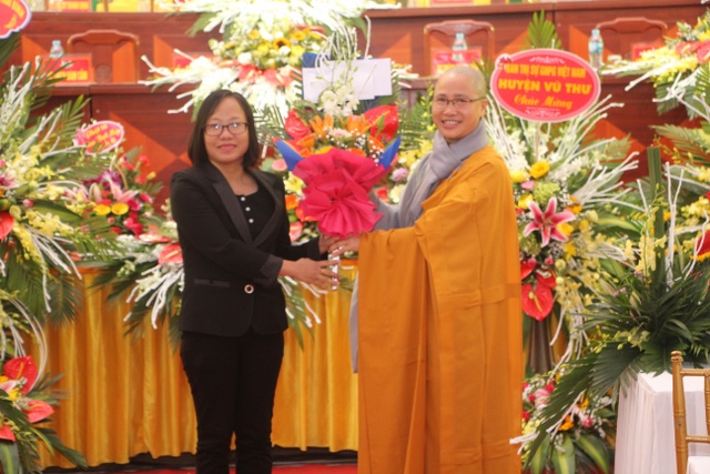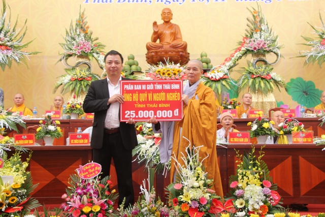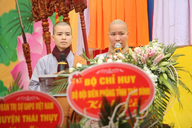 Tại buổi lễ, ông Nguyễn Văn Thạo, Phó ban Tôn giáo (Sở Nội vụ tỉnh) thay mặt lãnh đạo tỉnh phát biểu chúc mừng Phân ban Ni giới tỉnh Thái Bình. Ông xin ghi nhận và cảm ơn những đóng góp hết sức ý nghĩa của chư Ni và tín đồ Phật tử và trong vai trò chức năng là cơ quan quản lý Nhà nước về công tác tôn giáo sẽ tham mưu cho các cấp Giáo hội và chính quyền các cấp, tạo điều kiện để các hoạt động Phật sự của phân ban Ni giới Thái Bình nói chung, cá nhân chư Ni và các cơ sở tự viện nói chung được thuận lợi, tuân thủ Hiến pháp, pháp luật hiện hành, thực hiện tốt “Luật Tín ngưỡng tôn giáo 2018”.