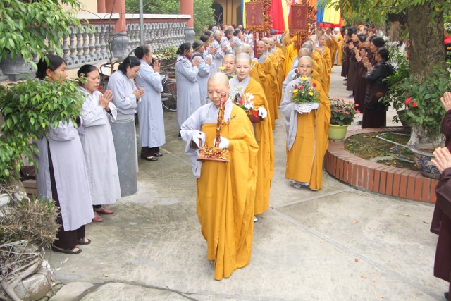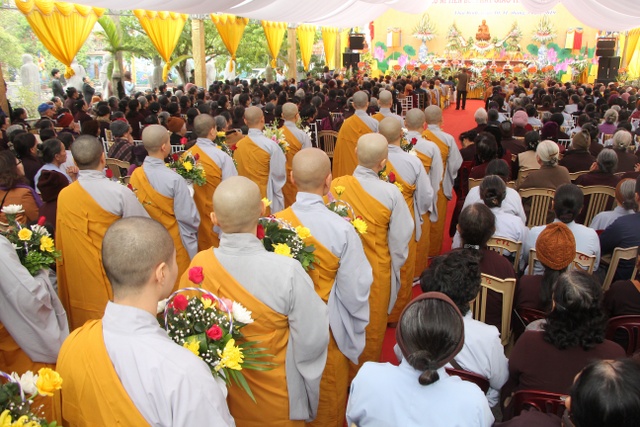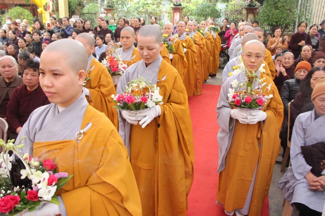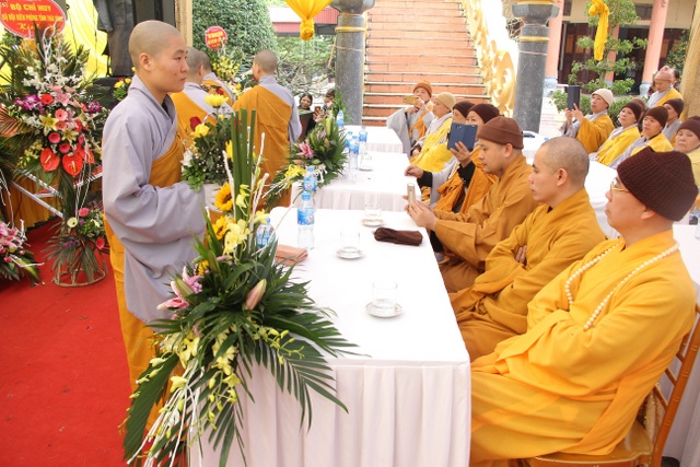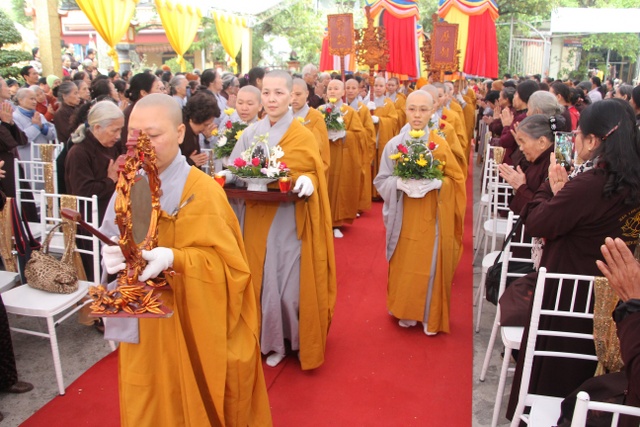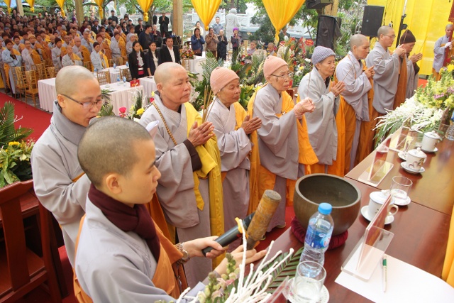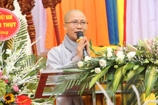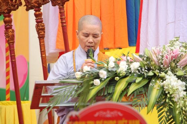Sau nghi thức niệm Phật cầu gia bị, chào cờ, đạo ca Phật giáo, phút tưởng niệm chư Phật, chư Tổ, chư Ni tiền bối là phát biểu khai mạc của NS.Thích Đàm Thoa, Trưởng Phân ban Ni giới tỉnh, khẳng định: “Với niềm tự hào và hân hoan hướng lòng tôn kính đối với các bậc Tổ Ni, người đã thắp lên con đường vững chắc cho Ni giới tu tập tâm linh, chấm dứt khổ đau sinh tử, để rồi một ngày chư Tỳ khiêu ni cũng được sự giác ngộ viên mãn như Người đã thành tựu. Hòa trong niềm không khí trang nghiêm thanh tịnh này, với những sắc y vàng tô đậm nét trời xuân, đất trời như thể quyện mình trong niềm kính ngưỡng vô biên đối với Người. Dẫu thời gian có trải qua hơn 2500 năm lịch sử và dẫu cho đất nước có trải qua bao cuộc thăng trầm biến đổi, thì đạo hạnh Người vẫn sáng ngời thanh cao”.