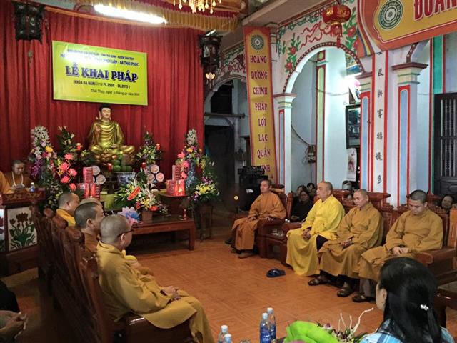 Trước khi bước vào lễ khai pháp, chư tôn đức đã lên chùa lễ Phật cầu gia bị. Tiếp đó, ĐĐ.Thích Thanh Dương tuyên bố lý do, giới thiệu chương trình và thành phần tham dự.