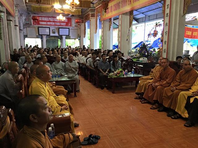 TT.Thích Thanh Tụ tuyên đọc diễn văn khai mạc, SC.Thích Tâm Thức, Phó BTS PG huyện tuyên đọc ý nghĩa an cư.