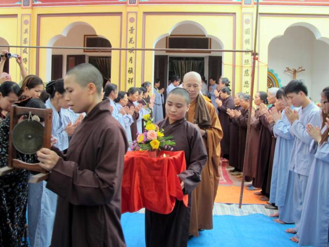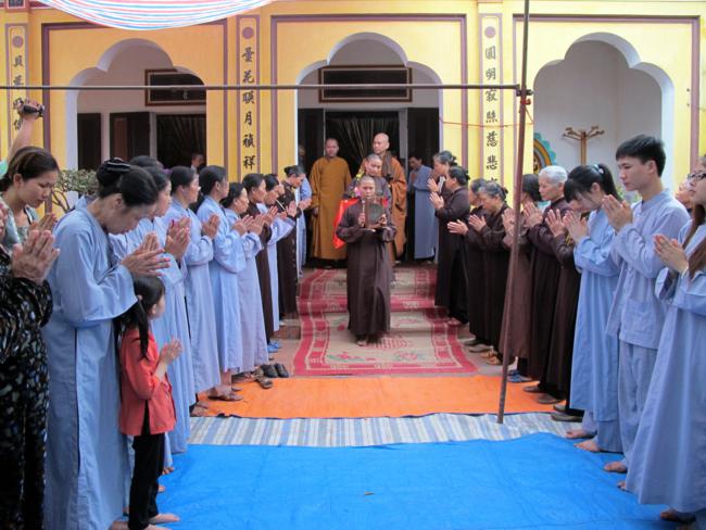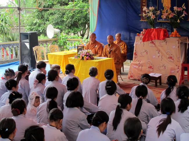 Đúng 10giờ, buổi Lễ Truyền Giới chính thức diễn ra trong không khí trang nghiêm thanh tịnh. ĐĐ.Thích Tánh Khoan làm chủ lễ, đã giải thích cặn kẽ ý nghĩa Quy y Tam Bảo, thế nào là năm Giới cấm của người Phật tử tại gia. Và để Phật Pháp năng động, mạnh mẽ hơn, đem lại lợi ích phước báo vô lượng cho người tu tập, Đại đức còn khuyến tấn Phật tử hành trì thêm 7 điều nguyện trong đời sống hàng ngày, đó là: tập ăn chay, học Pháp, thực hành tu tập, làm việc từ thiện, Phật hóa gia đình, phổ biến giáo Pháp và kiên cường hộ đạo.