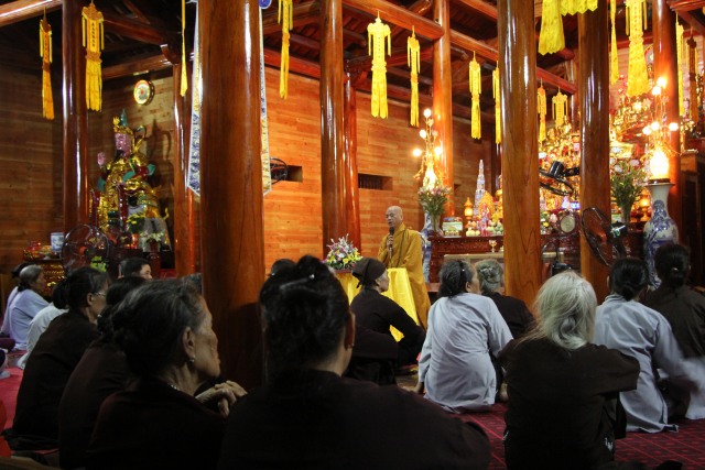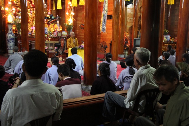 Nhận lời thỉnh cầu của chư Ni, Phật tử chùa Thượng Cầm (thôn Kìm, Vũ Lạc, TP.Thái Bình), tối 19/08/2015 (06/07/Ất Mùi), TT.Thích Thanh Định, Phó ban Thường trực BTS PG tỉnh Thái Bình đã quang lâm đạo tràng và có thời chia sẻ pháp thoại về chủ đề: “Chữ hiếu đối với người con Phật”. Thượng tọa đã nhắc lại nguồn gốc, ý nghĩa của ngày lễ Vu Lan, từ tích truyện của Bồ tát Mục Kiền Liên báo hiếu mẹ mình là bà Thanh Đề. Ngày Vu Lan, ngày Báo hiếu đã ăn sâu vào tâm khảm của người Phật tử, vào lòng người Việt Nam và thật sự trở thành nét văn hóa độc đáo. Hiếu là chất liệu cho cuộc sống, là hương thơm cho đời, là hành trang vô giá và không thể thiếu vắng ở bất kỳ người nào. Hiếu phản ánh đời sống văn hóa và đạo đức của xã hội. Hiếu phân định nhân cách, tri thức của con người. Hiếu là chất liệu sống muôn thuở. Thượng tọa nhấn nhủ: Muốn noi gương hiếu của Ngài Mục Liên, người học Phật cần thương yêu cha mẹ, làm cha mẹ vui lòng, tu dưỡng bản thân, báo hiếu bằng việc làm, hành động của mình, hướng cha mẹ hướng đến Phật pháp. “Nếu chúng ta biết tu, có hiếu đạo thì ngày nào cũng là ngày Vu Lan – Báo hiếu”, Thượng tọa nhắn nhủ đến quý Phật tử.