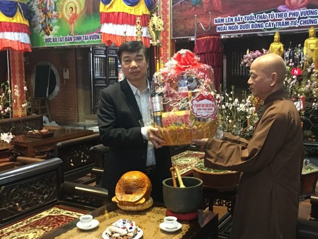 Hòa trong không khí tưng bừng của cả nước chuẩn bị đón Tết Nguyên đán Canh Tý và thể hiện tinh thần đoàn kết giữa đạo và đời, chiều nay 21-01 (nhằm ngày 27/12/Kỷ Hợi), quý vị lãnh đạo Uỷ ban MTTQ Việt Nam tỉnh, ban Tôn giáo (sở Nội vụ) đã đến thăm, chúc Tết Thượng tọa Thích Thanh Định, Ủy viên Hội đồng Trị sự Trung ương, Phó ban Thường trực Ban Trị sự Phật giáo tỉnh, trụ trì chùa Từ Xuyên (P.Hoàng Diệu, TP.Thái Bình).