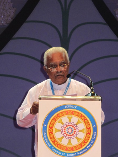 Tiến sĩ. A.T Ariyaratne, Chủ tịch Sarvodharya phát biểu về "Sự phục hồi toàn cầu – Góc nhìn của Phật giáo"