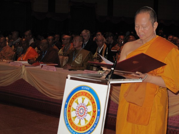 Hòa thượng Phra Dharmakosajarn đã gửi tới các đoàn đại biểu quốc tế lời cảm ơn chân thành vì đã có mặt tại Thái Lan để tham dự Đại lễ. Hòa thượng cũng bày tỏ nỗi lo lắng khi tình hình tại Thái Lan vẫn còn bất ổn sau khi chính phủ đã giải tán người biểu tình áo dỏ tại Bangkok. Sự kiện này đã ảnh hưởng nghiêm trọng tới hình ảnh của Thái Lan, nhất là dịp Đại lễ Tam hợp Liên hiệp quốc được tổ chức tại Thái Lan.