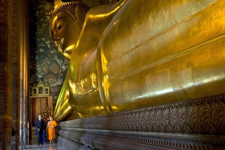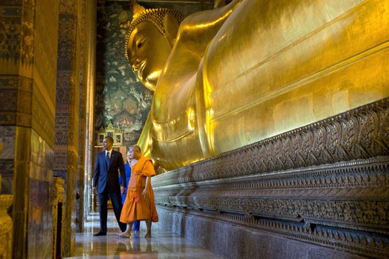 Theo AP, ông Obama hôm qua đã đi thẳng từ sân bay đến chùa Wat Pho, một trong những điểm du lịch nổi tiếng nhất của Thái Lan. Sau đó, tổng thống Mỹ diện kiến nhà vua và gặp thủ tướng Thái Lan.
