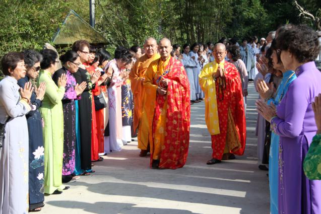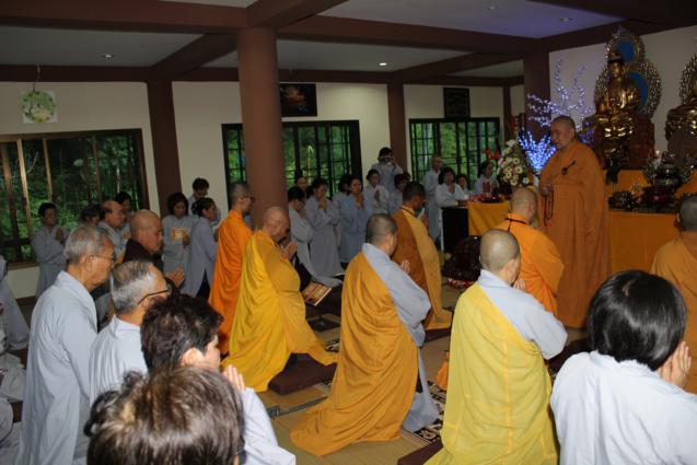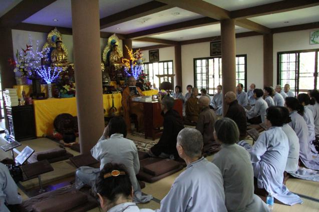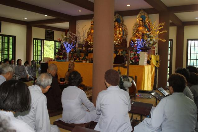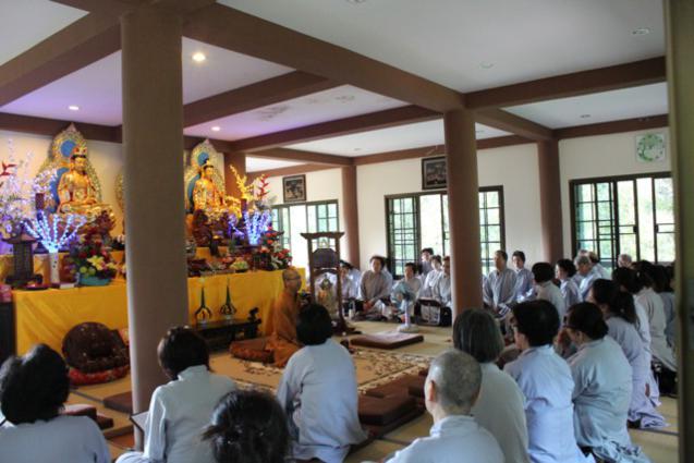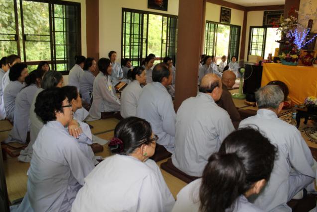 Không những học theo hạnh xuất thế của HT.Thích Như Điển, từ hồi xuất gia đến nay, ngài “không quên” thời khóa công phu sáng buổi nào. Trong suốt khóa tu, các Phật tử Việt nam còn học giáo lý Tịnh độ, phát nguyện “định cư” Tây Phương thắng cảnh. Theo sau những buổi khai thị tu học của chư Tôn đức, buổi tối, các Phật tử chắp tay kinh hành quanh ao sen thất bảo trong tiếng niệm Phật không ngớt, trải lòng theo âm hưởng đại chúng, chứng nghiệm vãng sanh Cực Lạc. Buổi tối, có lúc đoàn gặp nhau tại chánh điện Ưu Bà Tắc hoặc chánh điện Ưu Bà Di để giao lưu, chia sẻ việc tu học, phối hợp và giúp đỡ nhau hoàn thành các công việc Phật sự chung.