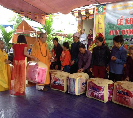 Cũng nhân dịp này, Thượng tọa Thích Nhuận Quang và Ban bảo trợ chùa Nguyên Ngộ tổ chức phát 100 phần quà cho người cao tuổi và học sinh nghèo hiếu học ( 30 phần cho người cao tuổi, 70 phần cho học sinh nghèo), phát 300 phần thuốc bổ, thuốc chữa bệnh khớp cho các bệnh nhân nghèo tại địa phương. Đồng thời, cúng dường cho chùa Thiên La Quang 50 triệu đồng.