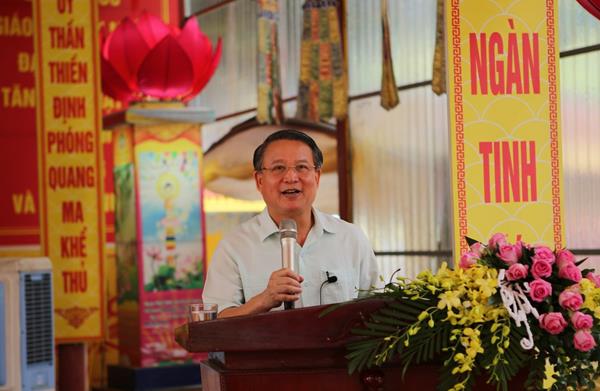 Ông cũng khẳng định vai trò của Phật giáo đối với sự phát triển của xã hội, cụ thể về các công tác an sinh xã hội, chung tay với các cấp chính quyền vận động bà con, nhân dân Phật tử từ bỏ mê tín dị đoan trong đời sống, và cùng chung tay với chính quyền đẩy lùi dịch bệnh Covid- 19 đang diễn biến phức tạp.