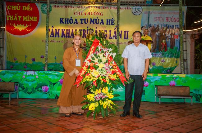Chứng minh và tham dự có TT Thích Nguyên Thành UV HĐTS GHPGVN, Trưởng BTS GHPGVN tỉnh Thái Nguyên; Đ Đ Thích Chúc Tiếp- Chánh VP BTS GHPGVN tỉnh Thái Nguyên, Tụ trì chùa Huống, Trưởng Ban tổ chứ khóa tu; cùng chư Tôn đức Tăng đồng tham dự buổi lễ.