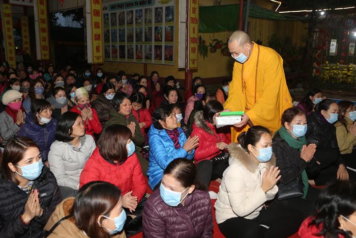 TT. Thích Nguyên Thành- UVTT HĐTS, Trưởng BTS GHPGVN tỉnh Thái Nguyên trực tiếp phát khẩu trang cho Phật tử về chùa lễ Phật đầu năm