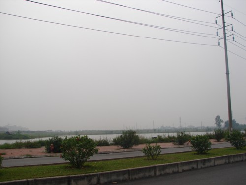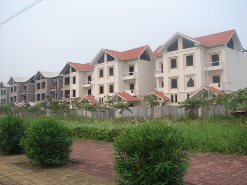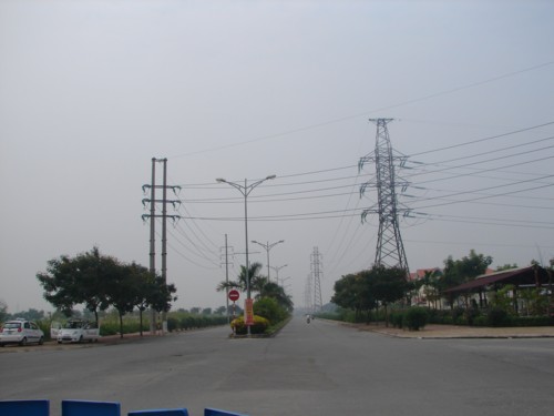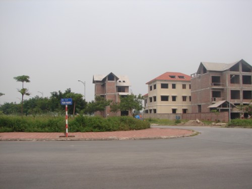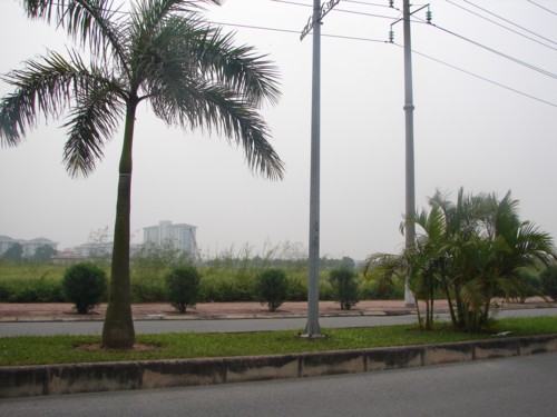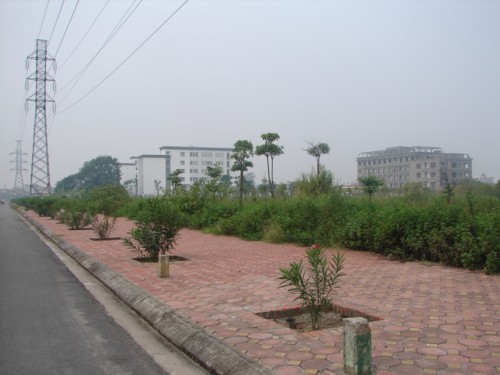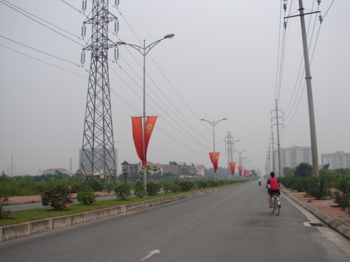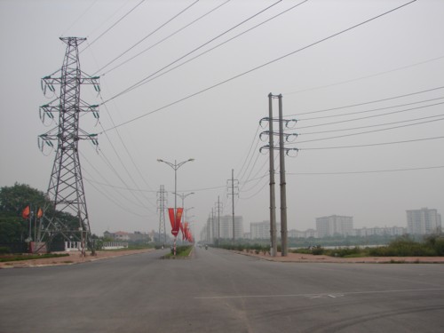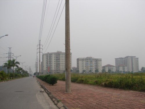 Thấp thoáng các khu nhà cao tầng trong khu đô thị mới Việt Hưng nhìn từ phố Vạn Hạnh
