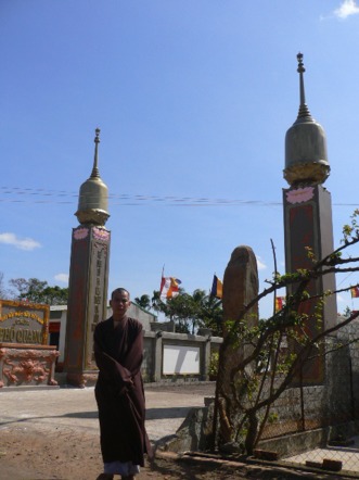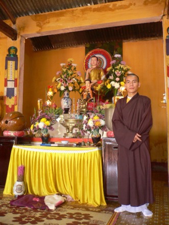Lần đầu tiên cách đây 4 năm, lúc ấy chúng tôi được một phật tử, đồng thời cũng là người bác họ dẫn vào chùa. Lối mòn vào chùa cỏ mọc chen lối đi, và chùa chỉ được lợp sơ sài với mái tôn, và nơi hành lễ cũng khá nhỏ, rất vắng bóng người, đặc biệt là không có thầy. Năm nay về lại chùa cũ, nhìn lối vào chùa khang trang, lòng tôi cảm thấy rất vui.
