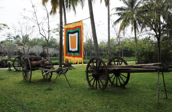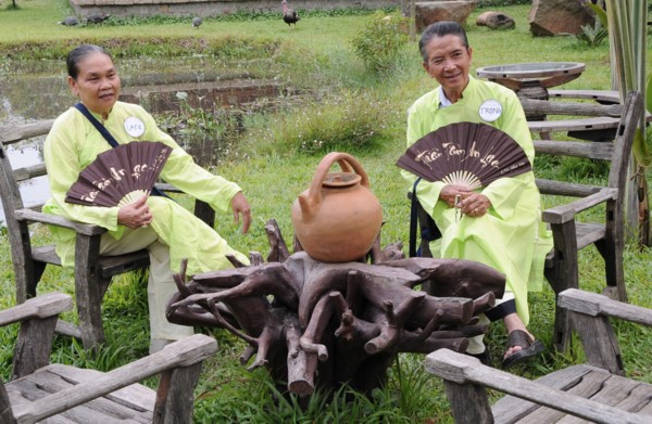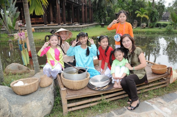 Đặt những bước chân đầu tiên dọc theo con đường quê thanh bình, thấp thoáng hình ảnh các em nhỏ nô đùa, múa hát đồng dao, mời trà và kẹo mứt… du khách như được sống lại khoảng trời của tuổi thơ mộc mạc mà bình yên lạ thường.