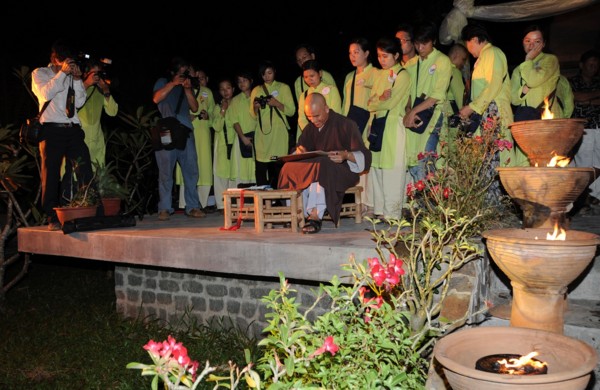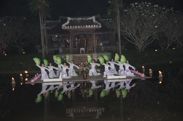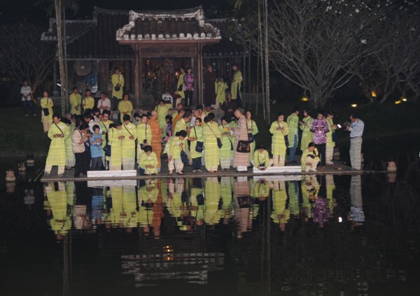 “Đêm tụng kinh Pháp Hoa, bảo tháp hiện chói lòa, khắp trời Bồ tát hiện, tâm Phật trong tâm ta” lời bài hát vang lên giữa hư không, tất cả mọi người chấp tay nguyện cầu trong niềm an lạc khi tâm hướng về mẹ Bồ tát Quán Thế Âm uy nghiêm từ phía điện thờ; hàng trăm ngọn đèn hoa đăng tỏa sáng ảo diệu trên mặt hồ Chân Lạc như cầu mong niềm an lành đến tất cả muôn loài…