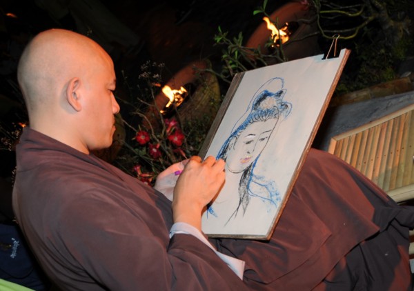 Chương trình càng ý nghĩa hơn khi Nhà thơ – Nhà thư pháp lỗi lạc Trụ Vũ đã hoan hỷ viết tặng quý khách có mặt những tác phẩm thư pháp tuyệt vời của mình; hòa vào không gian nghệ thuật ấy, Đại đức Thích Nhuận Thường đã biểu diễn tài nghệ khi họa chân dung Mẹ từ bi Quán Thế Âm trong thời gian rất ngắn; lung linh gian Từ Bi Tâm với em nhỏ hồn nhiên tặng nụ hôn cho tất cả những ai đến và mở rộng lòng mình để góp phần vào từ thiện…