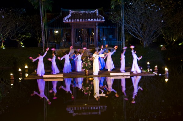 Lời bài hát “Niềm An Vui” tiễn chân quý khách trong sự lưu luyến không rời. Trên cao, ánh trăng đêm rằm vằng vặc soi bóng theo từng bước chân an lạc…