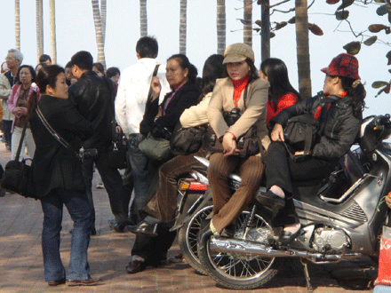 Vừa mới gởi xe vào bãi, chúng tôi đã bị một đám đông già có, trẻ có, tay xách, nách mang mời chào những đặc sản của địa phương. Thấy chúng tôi kiên quyết không mua, nhóm người này bắt đầu giãn ra dần nhưng vẫn còn lại vài em nhỏ lẽo đẽo theo sau chúng tôi đi lên chùa. Suốt đoạn dốc lên chùa khoảng 200m, các em chỉ có một việc duy nhất nài ép chúng tôi phải mua giúp một vài món hàng mà các em giới thiệu. Khi đến cổng chính của chùa, tôi hết sức ngạc nhiên bởi hàng quán được bày la liệt chiếm hết không gian chùa, người ăn xin thì nhan nhản, thật trái với những gì mà nhà thơ Huy Cận miêu tả trong bài thơ “Các vị La hán chùa Tây Phương” 47 năm về trước.