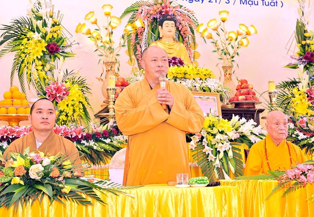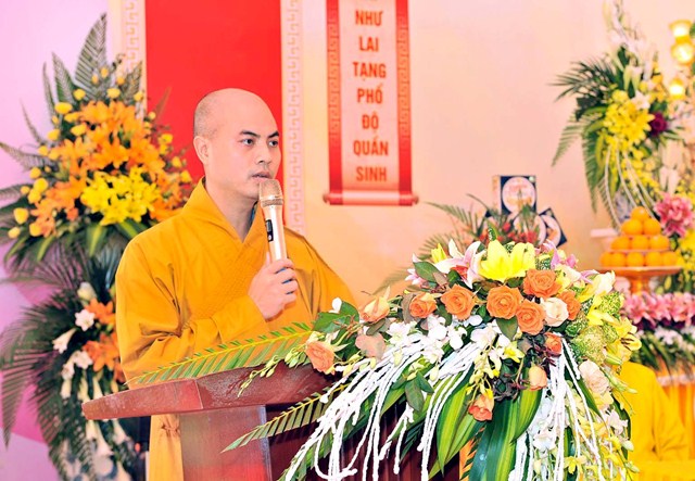 Thay mặt Đảng bộ và chính quyền, nhân dân huyện Nga Sơn, Ông Mai Đình Hiếu – Phó chủ tịch UNBD huyện đã phát biểu tại buổi lễ. Sau lời huấn từ của ĐĐ. Thích Tâm Thiện nghiệp sư của Đại đức tân trụ trì là lời đạo từ của Thường trực BTS GHPGVN tỉnh Thanh Hóa ĐĐ. Thích Tâm Định – Phó ban TT BTS GHPGVN tỉnh Thanh Hóa ban đạo từ cho buổi lễ: Thay mặt thường trực BTS tỉnh Đại đức đã chúc mừng Đại Đức tân trụ trì, mong rằng Đại Đức với sức trẻ và nhiệt huyết cống hiến cho đạo Pháp, dân tộc, công thêm sự thương tưởng của chư tôn giáo phẩm thường trực BTS, sự quan tâm của lãnh đạo các cấp chính quyền, ủng hộ của các mạnh thường quân, bà con nhân dân Phật tử xa gần. Hy vọng Đại Đức sẽ cố gắng và cố gắng hơn nữa trong việc tu học và hoằng dương Chánh Pháp, đưa đạo vào đời, kề vai sát cánh cùng BTS Phật Giáo Thanh Hóa, lãnh đạo các cấp chính quyền, nhân dân Phật tử cùng nhau góp phần xây dựng Phật giáo tỉnh nhà ngày càng phát triển tốt đẹp hơn nữa.