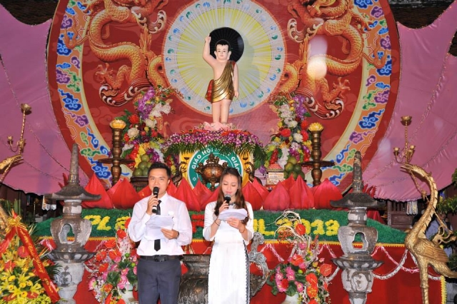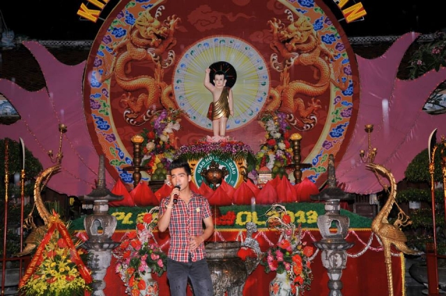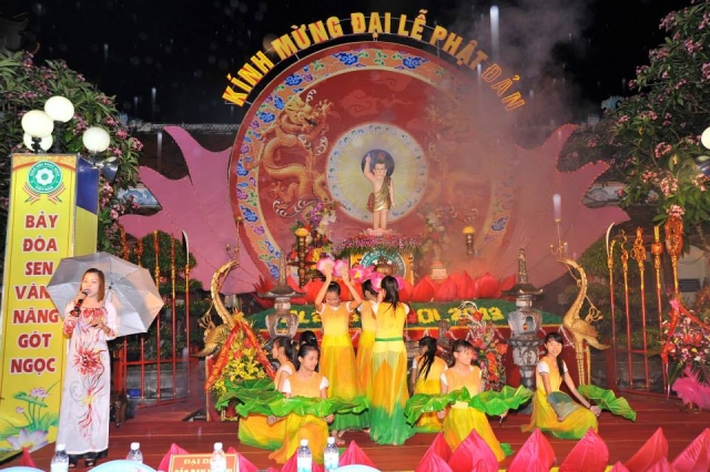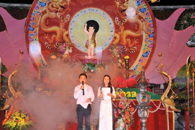 Mở đầu là chương trình văn nghệ ca ngợi đấng thế tôn và quê hương Đạo Pháp với sự tham gia của CLB võ Thuật Nhất Nam, CLB TNN Phật tử chùa Thanh Hà, chùa Hồi Long, Chùa Hồng Ân, Ca sĩ; Quang Lập, Ánh Tuyết, Hoài Thu, Hữu Tuấn, Thu Hài, Tam Ca Sen Hồng và đặc biệt với sự góp mặt của ngôi sao ca nhạc Hồ Quang Hiếu cùng Tân Vô địch tìm kiếm tài năng Việt Nam – Viet Nam Gottalent 2013 Trần Hữu Kiên.