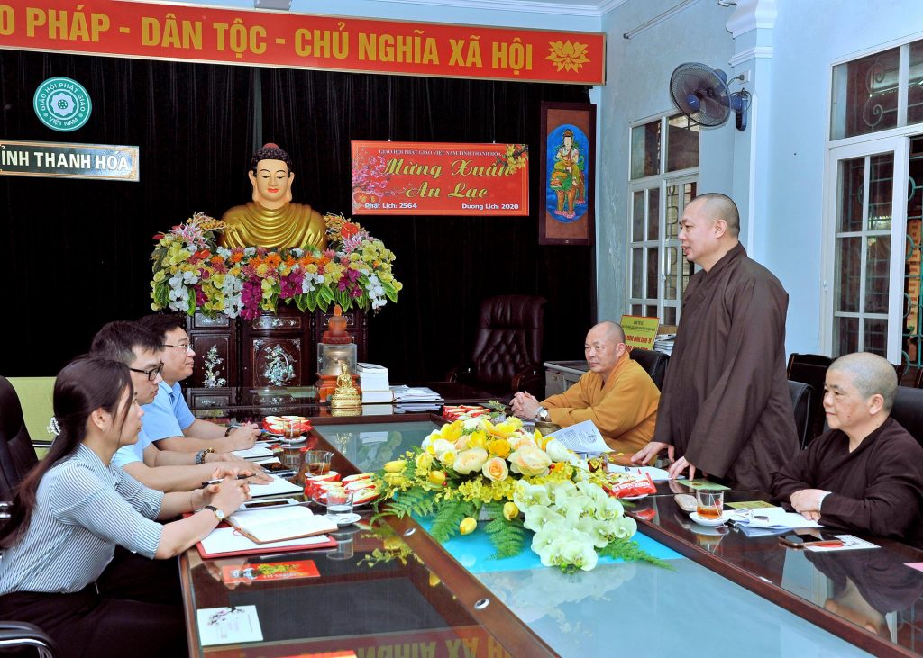 Chiều ngày 25/3/2020 (nhằm ngày 02/3/Canh Tý), tại Văn phòng BTS GHPGVN tỉnh Thanh Hóa (chùa Thanh Hà – Tp Thanh Hóa). Lãnh đạo BTS GHPGVN tỉnh Thanh Hóa đã có buổi làm việc với Ban Tôn giáo tỉnh Thanh Hóa để thống nhất kế hoạch tổ chức chương trình Đại lễ Phật đản PL 2564 – DL 2020 trên địa bàn tỉnh.