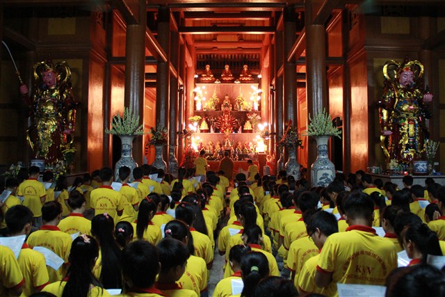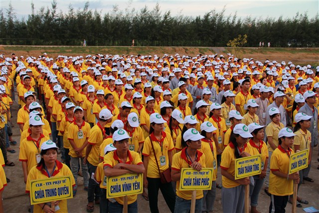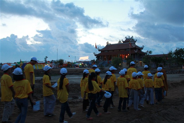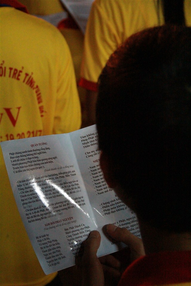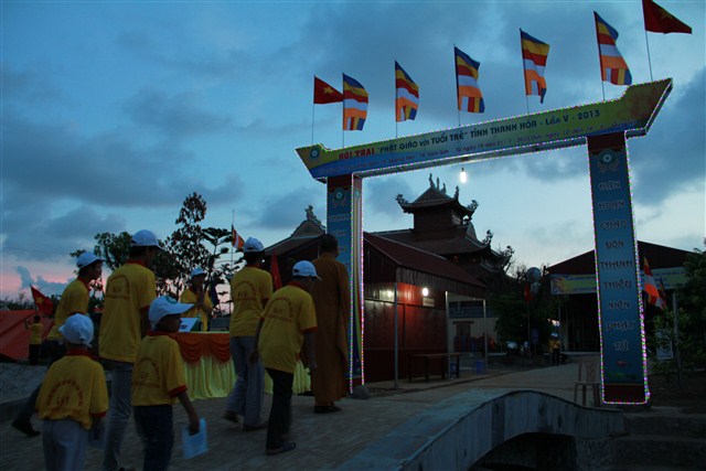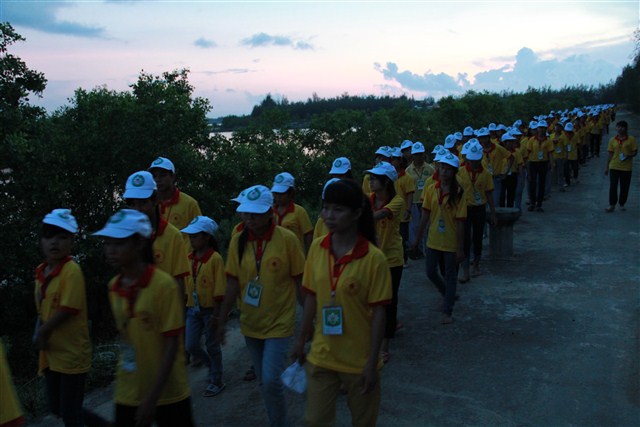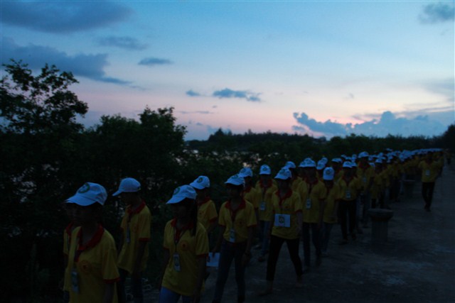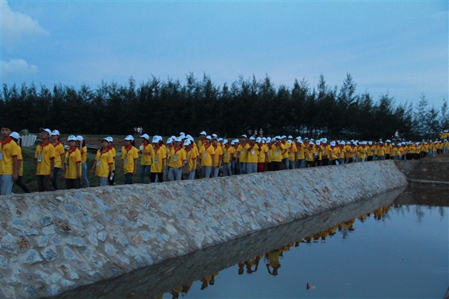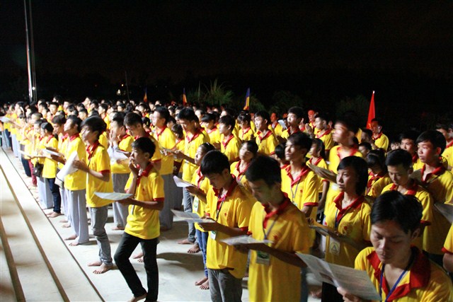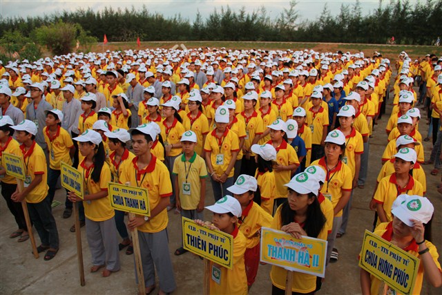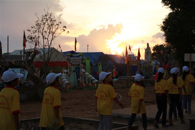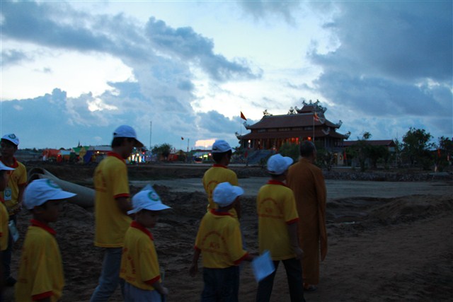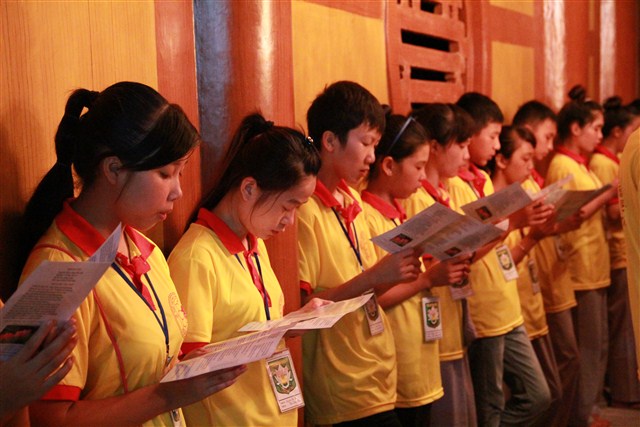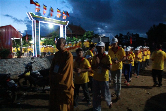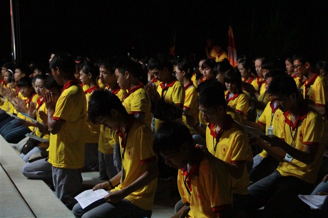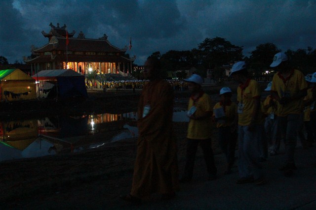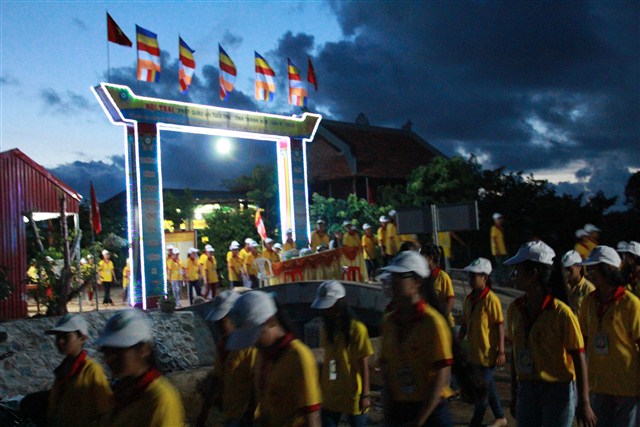 Sau khi tiếng còi báo thức, tất cả các đội đồng loạt thức dậy, vệ sinh cá nhân cùng vân tập về nơi Chánh Điện tụng kinh lễ Phật, sau đó cùng thực hiện thiền hành dưới sự hướng dẫn của ĐĐ. Thích Trúc Thông Tánh – Phó BTC Hội Trại.