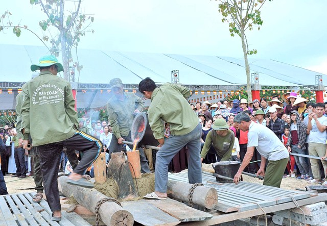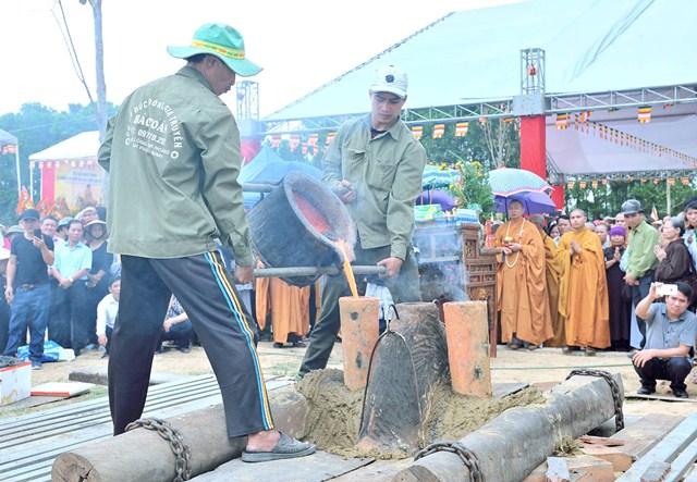 Sau khi các lễ nghi của chư tăng được tiến hành, gần 4000 kg đồng nung chảy được rót vào khuôn chuông dưới sự chứng kiến của hàng nghìn phật tử và quan khách. Cũng tại lễ đúc chuông một số phật tử và tăng ni đã tự nguyện đem vàng, bạc, đá quý để cho vào đúc chuông với mong muốn đây sẽ là quả chuông ý nghĩa gắn với công trình tâm linh chùa Vạn Linh và nhân dân địa phương.