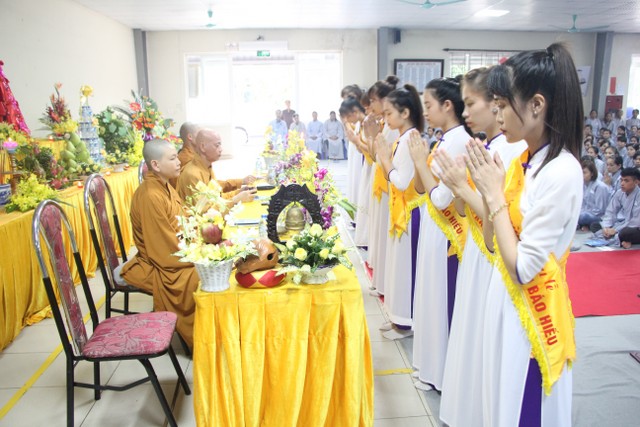 Với các nghi thức truyền thống: niêm hương – bạch Phật, dâng lục cúng, cài hoa hồng và dâng y đã diễn ra trong sự trang nghiêm, thành kính, giúp các quý vị lãnh đạo và tập thể cán bộ công nhân viên xí nghiệp hiểu thêm về nguồn gốc và ý nghĩa lễ Vu Lan, công ơn sinh thành dưỡng dục của cha và mẹ. Những giọt nước mắt lăn dài trên má khi đại chúng được nghe diễn đọc về “Ý nghĩa hoa hồng cài áo” và chạnh lòng nghĩ về kỷ niệm thời thơ ấu bên cha mẹ. Đặc biệt, lễ tri ân cha mẹ diễn ra rất xúc động khi những người con được nghe lời kinh Báo Hiếu nói về 10 ơn và dâng nước, tặng quà, cài hoa cho cha mẹ.