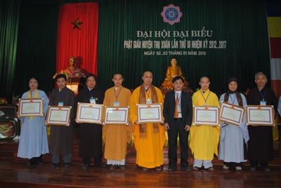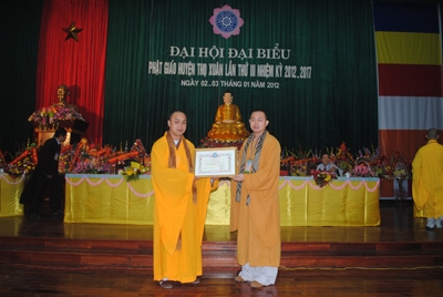 Qua hai ngày làm việc khẩn trương nghiêm túc trong không khí đoàn kết hòa hợp, thẳng thắn đóng góp ý kiến trên tinh thần xây dựng và phát triển giáo hội, Đại hội đã thống nhất thông qua báo cáo tổng kết công tác Phật sự 5 năm nhiệm kỳ II (2007- 2012) và chương trình hoạt động nhiệm kỳ III (2012-2017) của BĐD huyện Thọ Xuân.