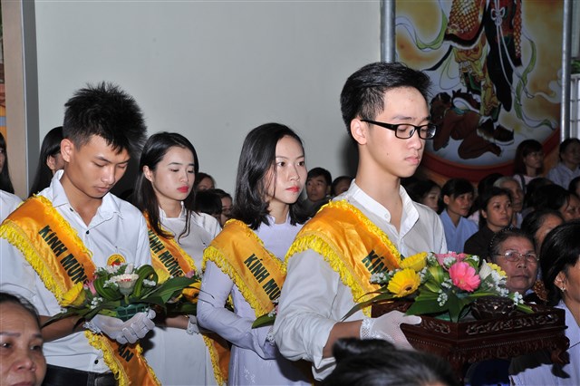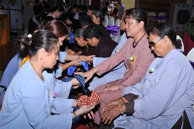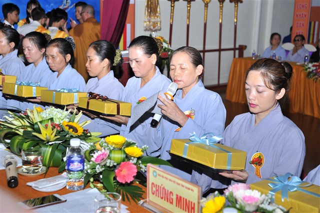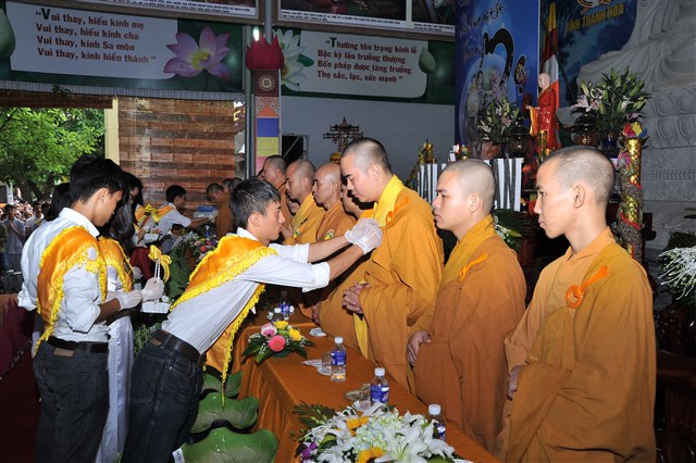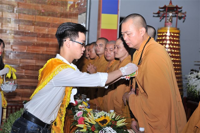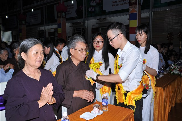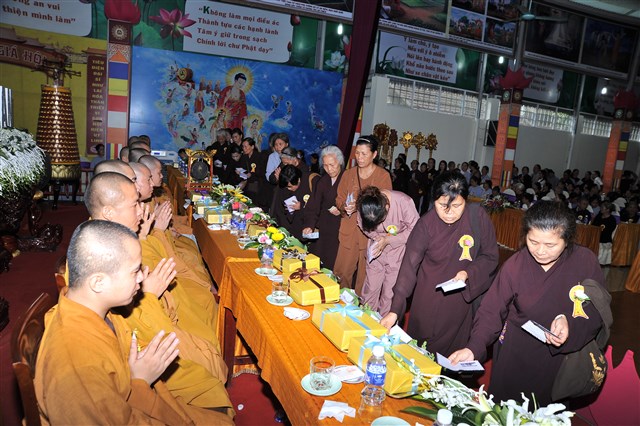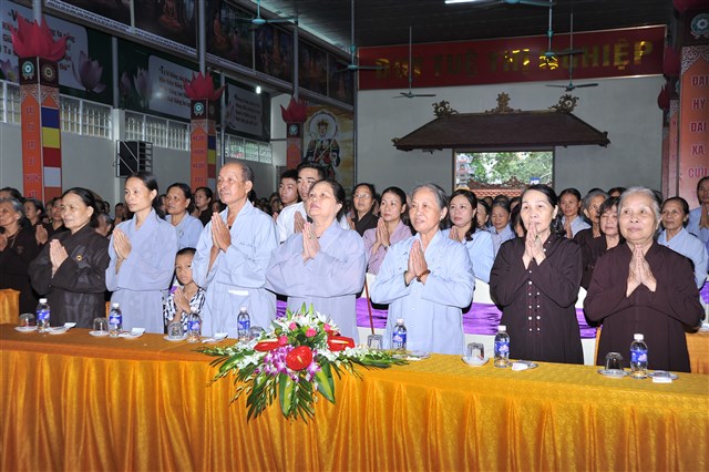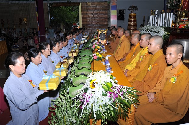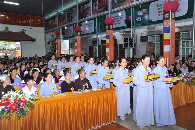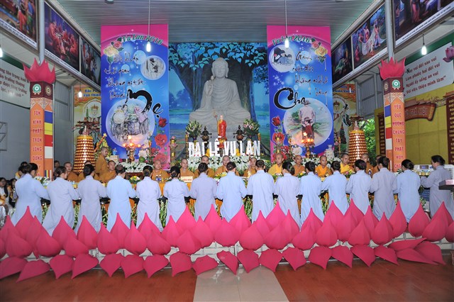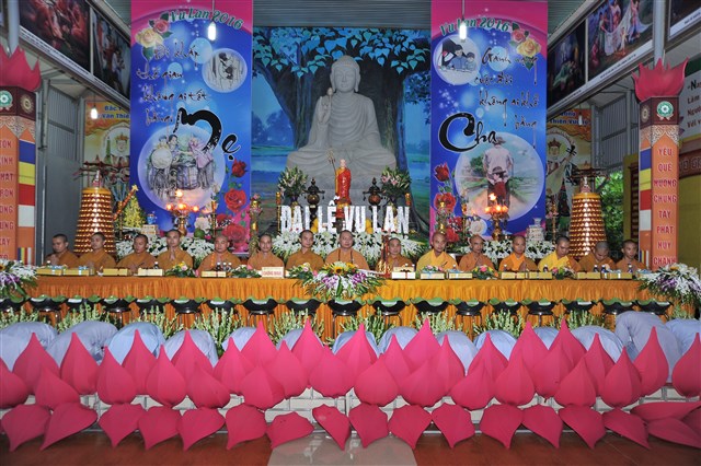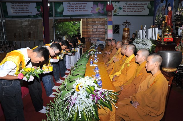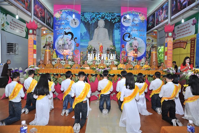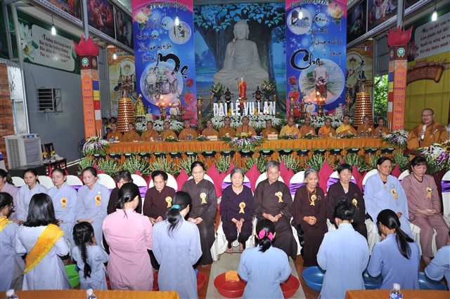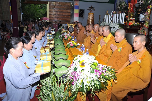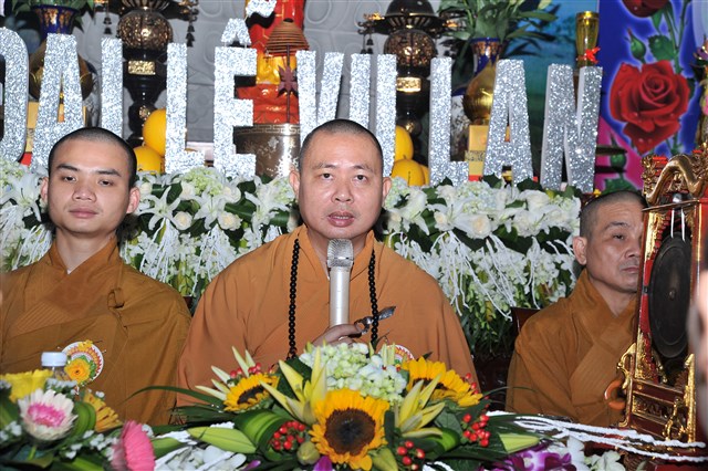 Tại buổi lễ quý Phật tử đã thành tâm dâng phẩm vật cúng dường chư tôn đức tăng. Thay mặt chư tôn đức chứng minh ĐĐ. Thích Tâm Đức đã ban đạo từ cho buổi lễ, tán thán tinh thần hiếu đạo của quý Phật tử , đồng thời Đại Đức cũng khuyến tấn quý Phật tử phải nổ lực tu học và siêng làm việc thiện, tụng kinh hồi hướng công đức đó cho cha mẹ hiện tiền cũng như cha mẹ đã quá vãng, cùng rằm tháng 7 sao cho đúng chính Pháp vì có làm đúng chính pháp thì mới có được nhiều lợi lạc, nương nhờ vào đó để báo đáp thâm ân của cha mẹ.