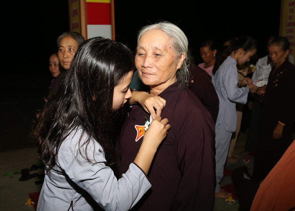 Cuối buổi lễ là Nghi thức cài hoa hồng và thắp nến tri ân nhân mùa Vu lan Báo hiếu.