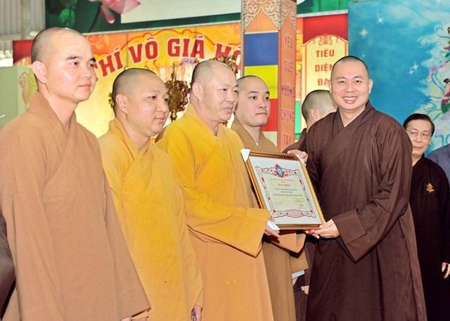 TT. Thích Tâm Đức – trưởng BTS tỉnh trao bằng khen cho các tập thể có thành tích trong Đại lễ Phật đản năm 2019