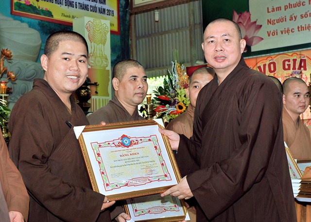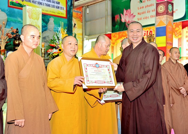 TT. Thích Tâm Đức – trưởng BTS tỉnh trao bằng khen cho các tập thể có thành tích trong Đại lễ Phật đản năm 2019