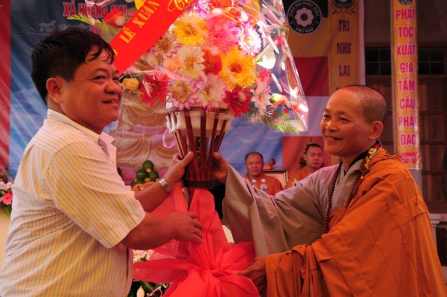 Về phía Đại biểu chính quyền các cấp có lãnh đạo TP. Thanh Hóa có sự tham dự Ông Lê Thế Đạo – UV Ban Thường vụ thành uỷ – Trưởng Ban dân Vân Thành uỷ Tp. Thanh Hoá, Ông Nguyễn Huy Huấn – Phó chủ tịch UBMTTQ Tp. Thanh Hoá, Bà Nguyễn Thị Nhung – Phó ban Kinh tế Xã hội, HĐND Tp. Thanh Hoá, Ông Lê Kim Huấn – Phó trưởng phòng nội vụ UBND tp. Thanh Hoá, cùng các ông bà đại diện lãnh đạo công an Thánh phố, chuyên viên các phòng ban Tp. Thanh Hoá. Về phía chính quyền địa phương xã Hoằng Anh có dự tham dự của Ông Nguyễn Hữu Tùng – Bí thư Đảng ủy – Chủ tịch HĐND xã, Ông lê Văn Chiến – phó bí thư Đảng uỷ – chủ tịch UBND – trưởng Ban Quản lý Di tích xã Hoằng Anh, Bà NGuyễn Thị Xuân phó bí thư thường trực Đảng uỷ xã, Ông Trần Bá A – chủ tịch MTTQ xã, cùng đại diện Đảng Ủy HĐND – UBND – UBMTTQ và các ban ngành đoàn thể xã Hoằng Anh và đông đảo quý tín đồ nhân dân Phật tử đến tham dự và chúc mừng.